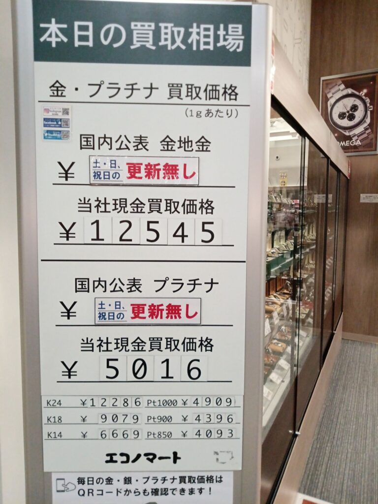 エコノマートは本日も金・銀・プラチナ製品各種を岩手県内トップクラスの買取単価にお買取りしております。
