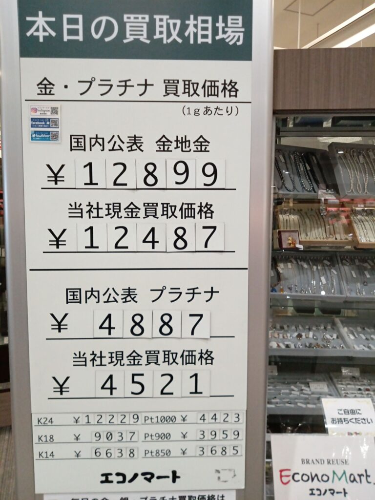エコノマートは本日も金・銀・プラチナ製品各種を岩手県内トップクラスの買取単価にお買取りしております。