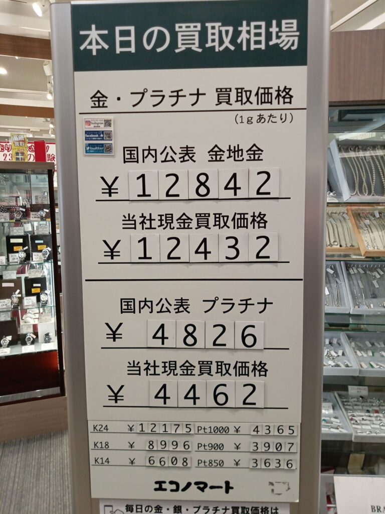 8/21(水)本日の金・プラチナ買取価格《エコノマート 盛岡南イオン》