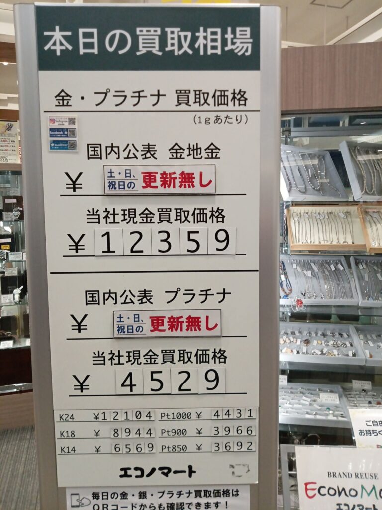 9/15(日)本日の金・プラチナ買取価格《エコノマート 盛岡南イオン》