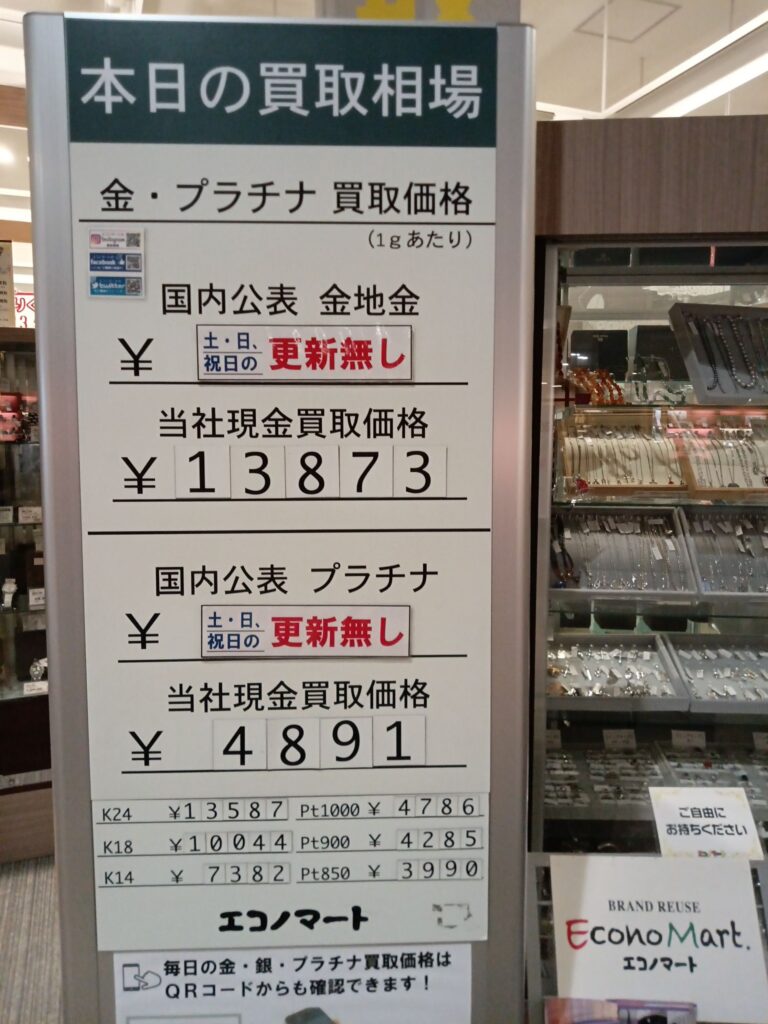 10/19(土)本日の金・プラチナ買取価格《エコノマート 盛岡南イオン》