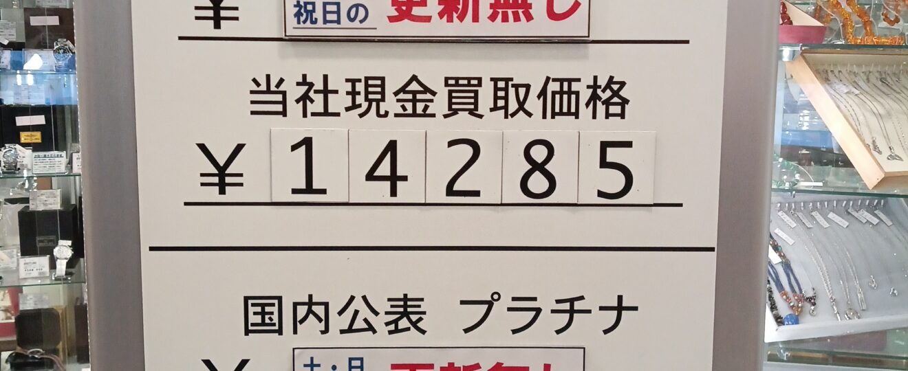 【本日の金・銀・プラチナ買取り相場】