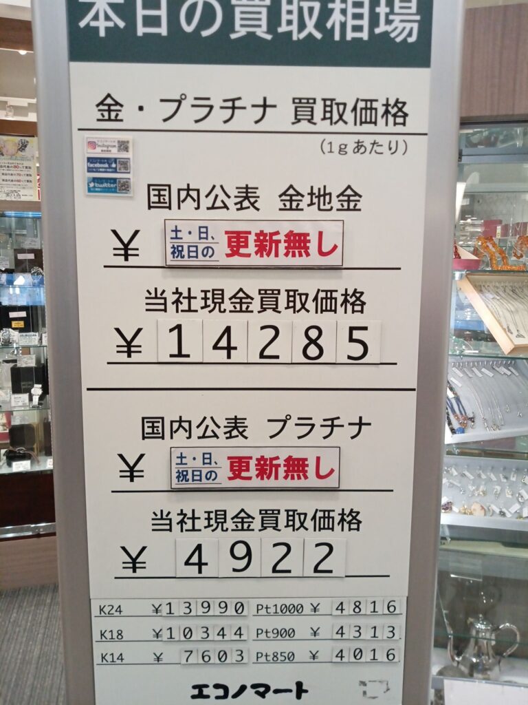 11/2(土)本日の金・プラチナ買取価格《エコノマート 盛岡南イオン》