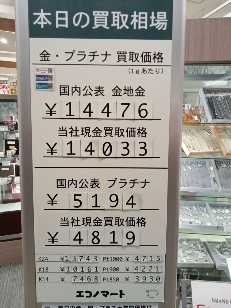 11/21(木)本日の金・プラチナ買取価格《エコノマート 盛岡南イオン》
