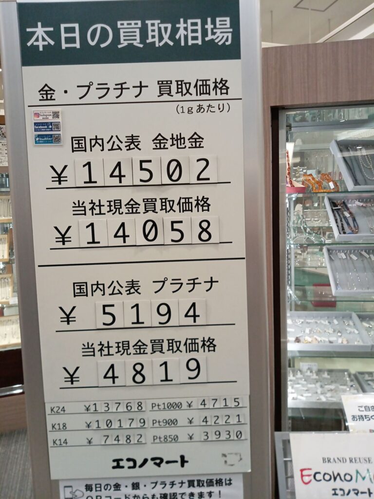11/25(月)本日の金・プラチナ買取価格《エコノマート 盛岡南イオン》