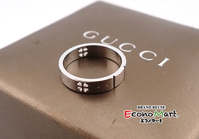 GUCCI|グッチ|K18WG|アイコンクローバーリングをお買取させていただきました。素材はK18ホワイトゴールドでクローバーをモチーフにした、グッチの人気が高いリングのお買取りです。グッチのリングやネックレスなどのジュエリーは人気があり、プレゼントにも使われます。今回は状態よく、高価買取になりました。貴金属の買取単価は岩手県内でもトップクラスで、大手貴金属会社と同じ金額で買取をしております。買取単価は日々変動いたしますので、いつでもお問合せしてください。貴金属相場が上昇中ですので、お持ちの金、プラチナ製品ありましたら一度ご相談ください。当店は手数料など一切かかりませんので、査定金額はそのままお客様にお支払いします。金、プラチナの買取金額を知りたい方はホームページをチェックしてください。エコノマートでは、金、銀、プラチナ素材のメダル各種の査定、買取を毎日行っております。金種や素材が不明なお品物もお持ちいただけましたらしっかりお調べして、査定額を提示致します。日本の製品に限らず海外の金貨、メダルなども査定可能です。査定後は一度お持ち帰りになり、ご検討頂いても結構ですし、ご納得いただけましたらそのまま買取りも可能です。貴金属、地金類の査定・買取りなら20年以上の実績と経験のエコノマートにお任せください。