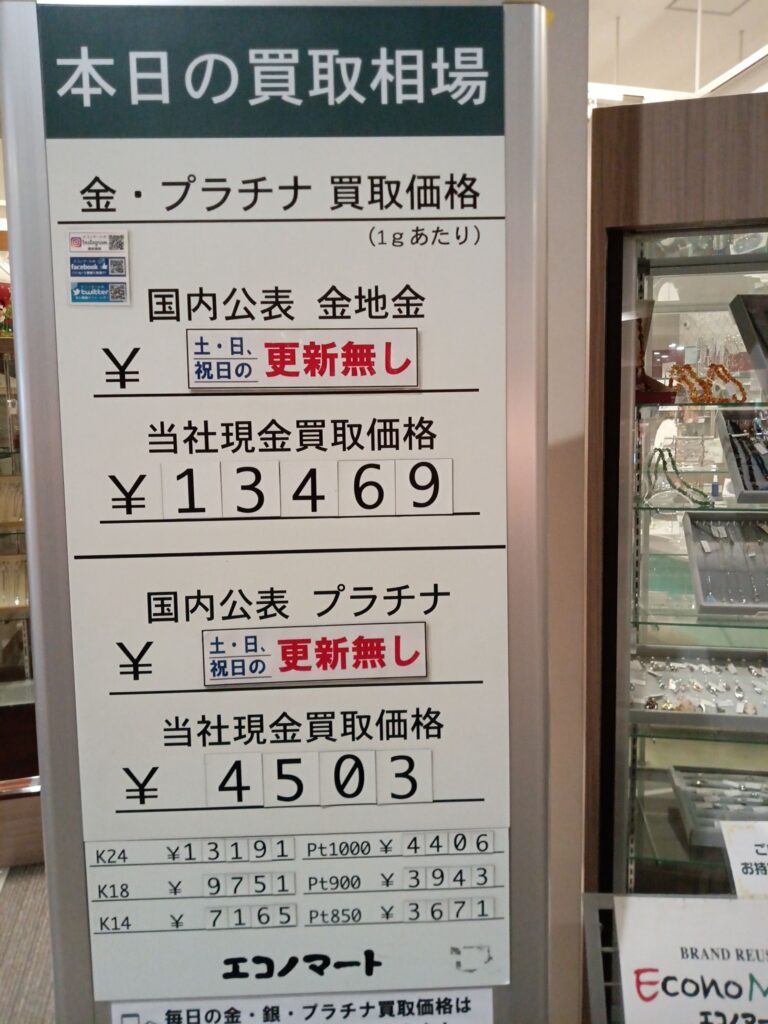 エコノマートは本日も金・銀・プラチナ製品各種を岩手県内トップクラスの買取単価にお買取りしております。