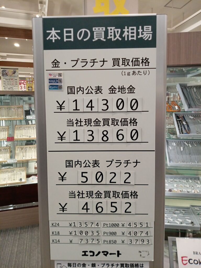 12/18(水)本日の金・プラチナ買取価格《エコノマート 盛岡南イオン》