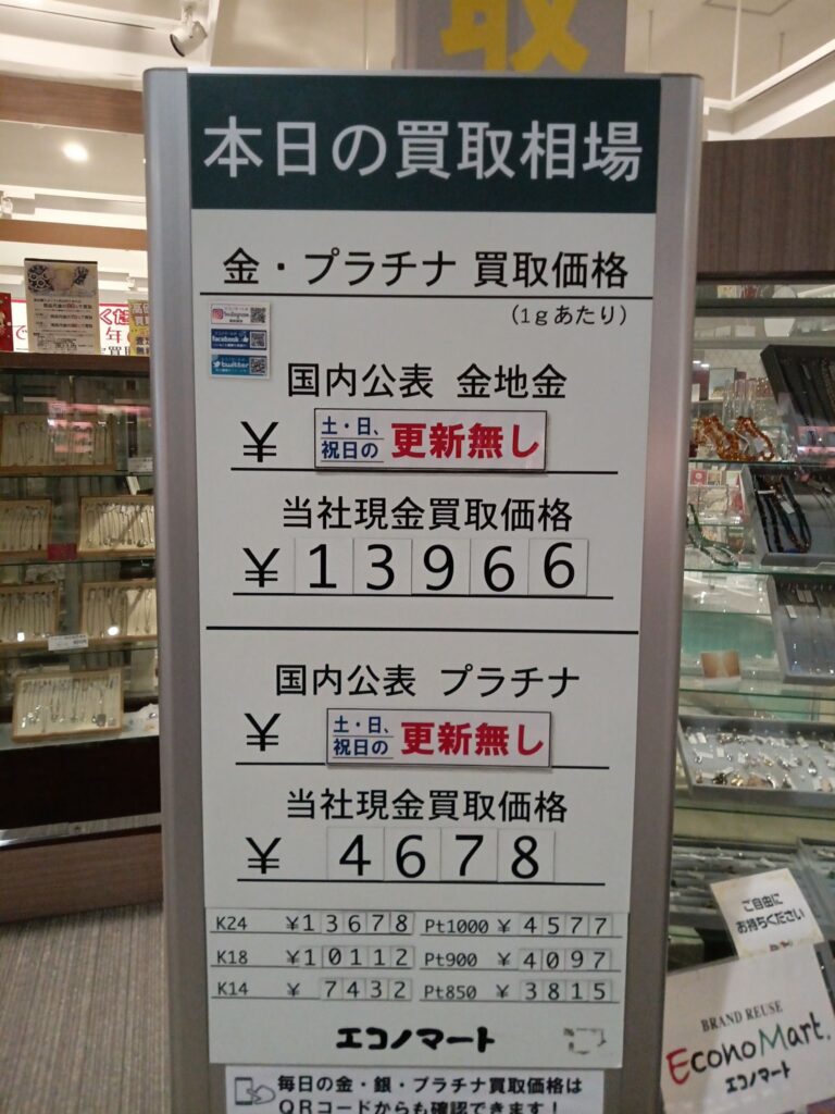 12/22(日)本日の金・プラチナ買取価格《エコノマート 盛岡南イオン》