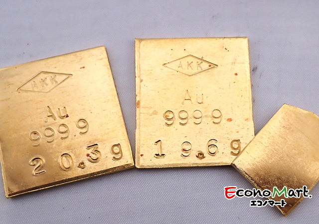 K24|純金板材|48.6gをお買取させていただきました。今回は工業用に使用される純金の板材のお買取りです。いろいろな場面で使用される加工用の板材。半導体など需要が高まっているので、リサイクル品の価値が上がって、金相場上昇になっている原因になっています。今回は690,000円を超える査定金額でした。買取単価は岩手県内でもトップクラスで、大手貴金属会社と同じ金額で買取をしております。買取単価は日々変動いたしますので、いつでもお問合せしてください。貴金属相場が上昇中ですので、お持ちの金、プラチナ製品ありましたら一度ご相談ください。当店は手数料など一切かかりませんので、査定金額はそのままお客様にお支払いします。金、プラチナの買取金額を知りたい方はホームページをチェックしてください。エコノマートでは、金、銀、プラチナ素材のメダル各種の査定、買取を毎日行っております。金種や素材が不明なお品物もお持ちいただけましたらしっかりお調べして、査定額を提示致します。日本の製品に限らず海外の金貨、メダルなども査定可能です。査定後は一度お持ち帰りになり、ご検討頂いても結構ですし、ご納得いただけましたらそのまま買取りも可能です。貴金属、地金類の査定・買取りなら20年以上の実績と経験のエコノマートにお任せください。