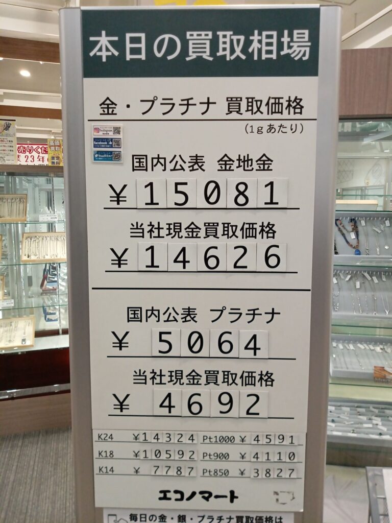 1/29(水)本日の金・プラチナ買取価格《エコノマート 盛岡南イオン》