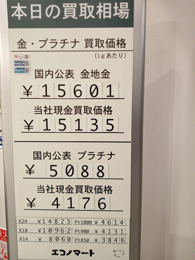 2/20(木)本日の金・プラチナ買取価格《エコノマート 盛岡南イオン》