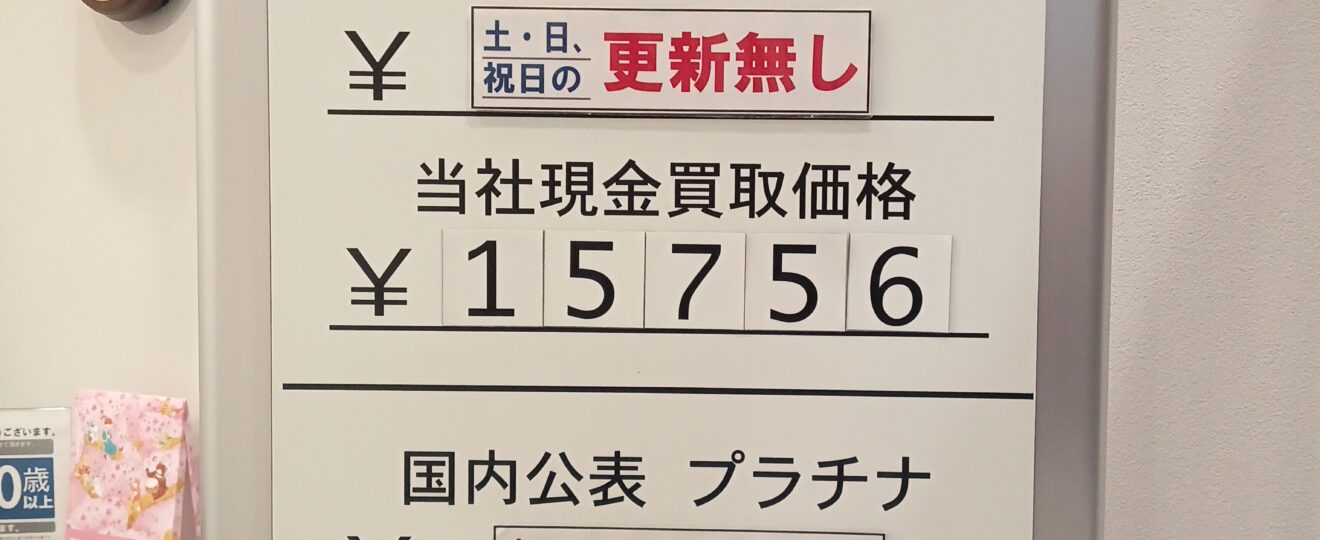 【本日の金・銀・プラチナ買取り相場】