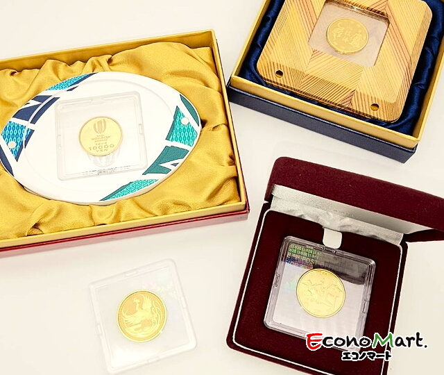 4/6(日)【貴金属 盛岡 エコノマート】K24|天皇陛下御在位20年記念|東京オリンピック|ラグビーワールドカップ|郵便制度150周年記念|1万円金貨|4枚|買取