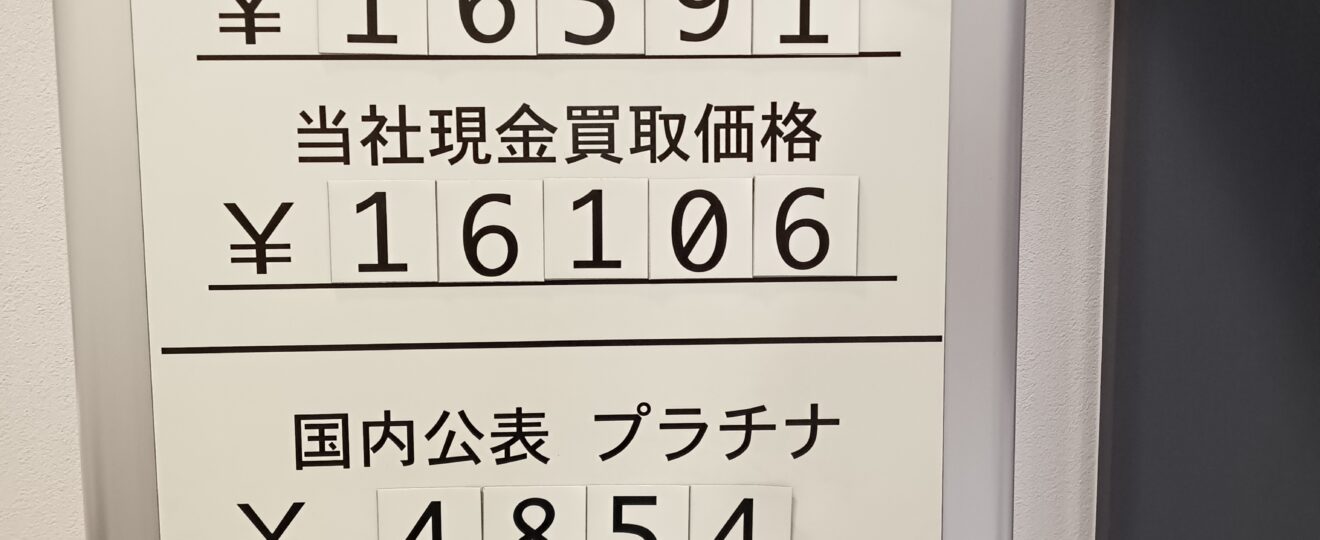 【本日の金・銀・プラチナ買取り相場】