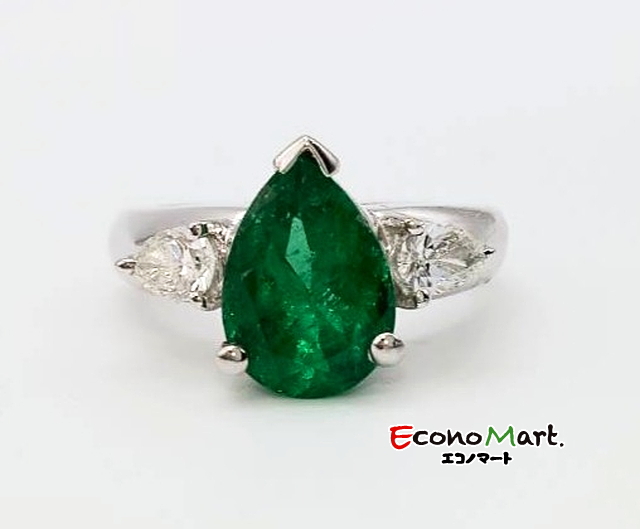 プラチナリングのお買取り、エメラルドとダイヤの組み合わせになります。エメラルドが大きくカットが珍しいです。今回は高価買取になりました。