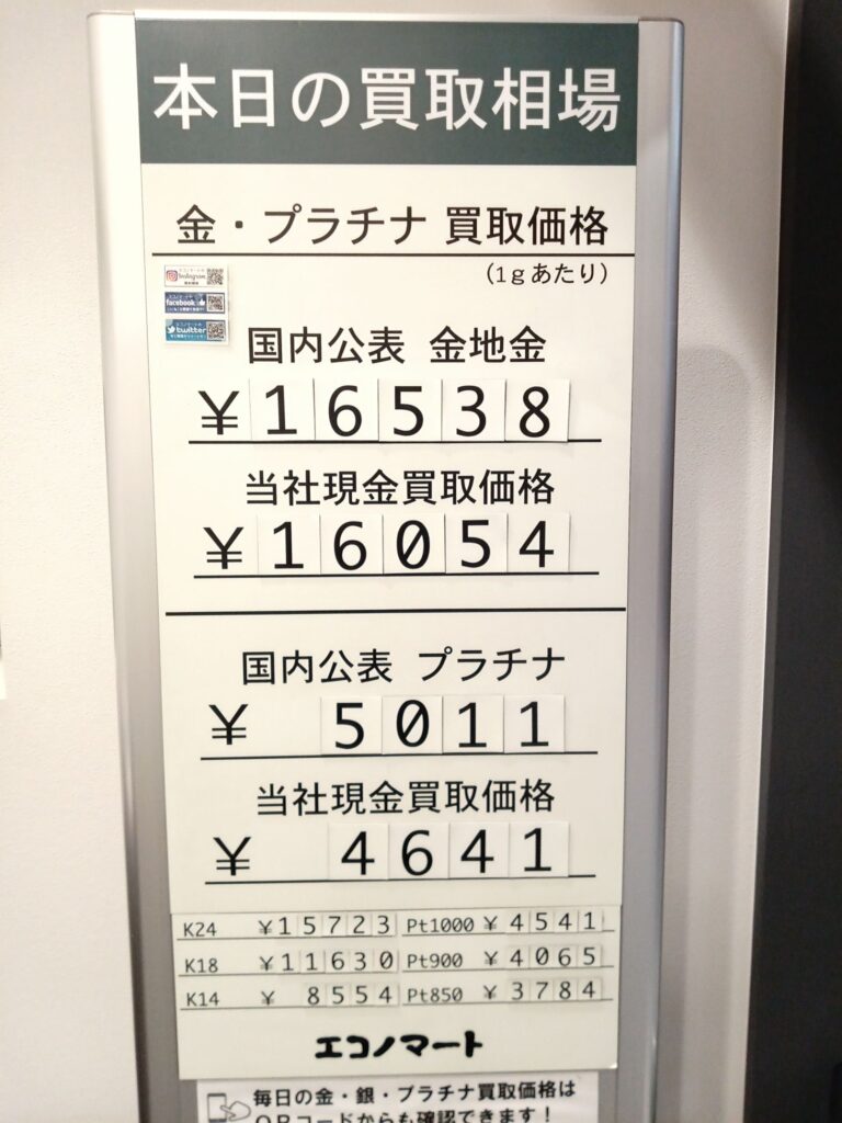 5/16(金)本日の金・プラチナ買取価格《エコノマート 盛岡南イオン・アネックスカワトク》