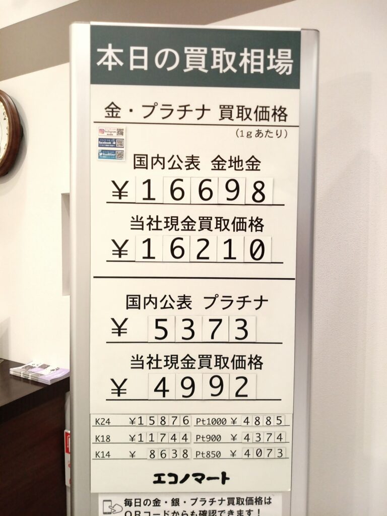 エコノマートは本日も金・銀・プラチナ製品各種を岩手県内トップクラスの買取単価にお買取りしております。