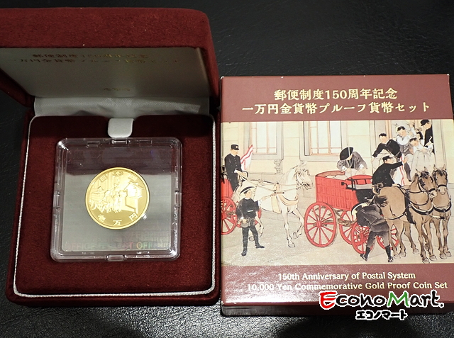 令和3年に郵便制度が150年を記念して作成された1万円金貨。同時に1000円カラー銀貨、記念メダルも発行されました。今回の金貨は重量が15.6グラムになります。金相場の高騰を受け、高価買取になります。今回は220,000円を超える査定金額になりました。