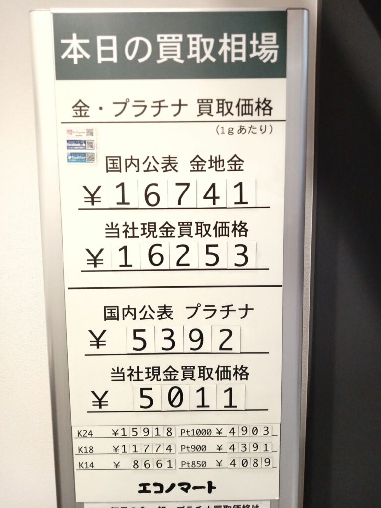 5/28(水)本日の金・プラチナ買取価格《エコノマート 盛岡南イオン・アネックスカワトク》