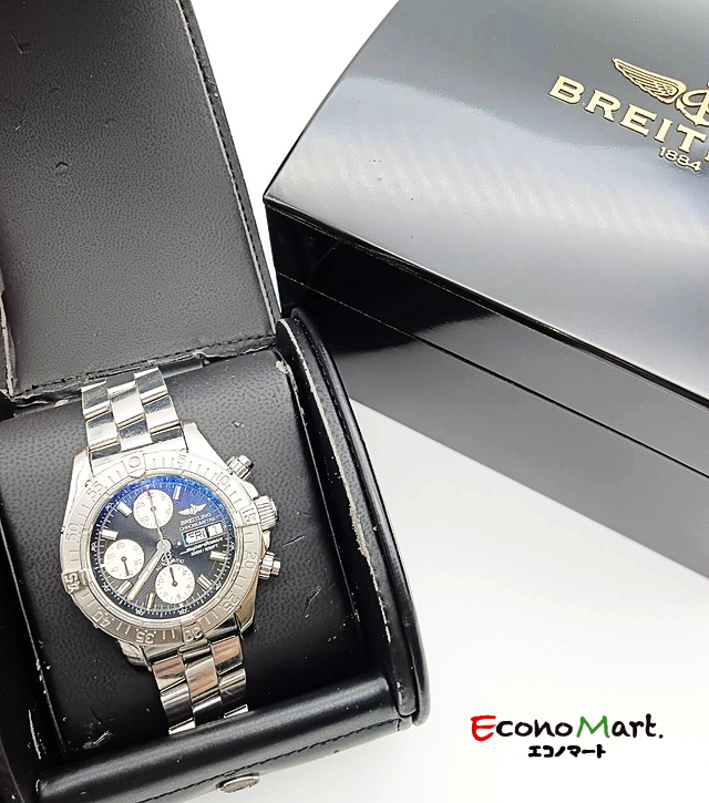 ブライトリング、スーパーオーシャンのお買取りです。ブライトリングの人気モデルの一つ、スーパーオーシャン、クロノグラフを初めて搭載したモデルです。今回は状態良く、高額買取になりました。