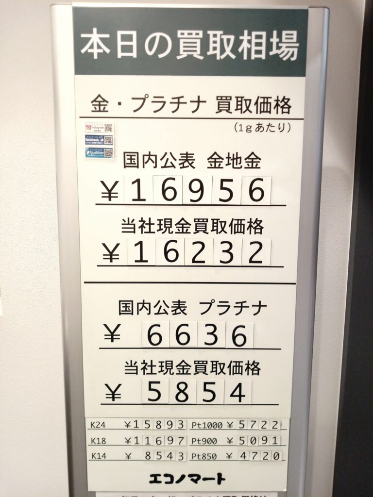 6/25(水)本日の金・プラチナ買取価格《エコノマート 盛岡南イオン・アネックスカワトク》