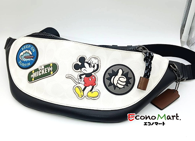 コーチ、ボディバッグのお買取りです。ミッキーコラボのバッグで今までも発売されています。今回はボディバッグでポケットなど収納があり人気のあるバッグです。今回は状態良く、高価買取になりました。