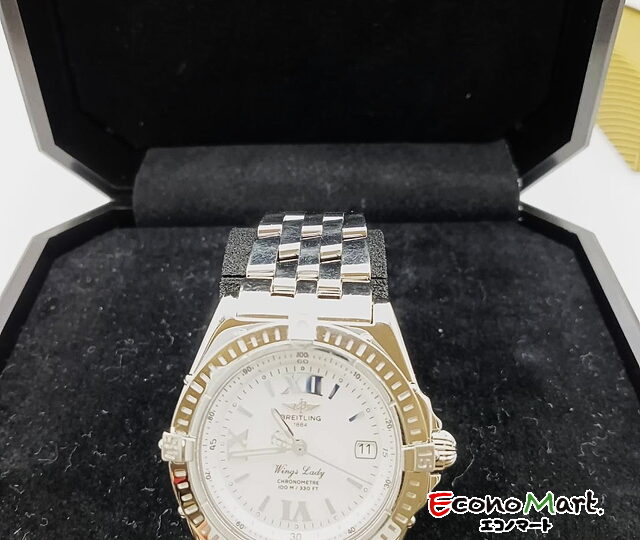 ブライトリング、ウイングレディのお買取りです。エレガントなデザインが特徴的なレディースのウイングレディ。ケースなどはステンレススチールで、ホワイトダイヤルで上品な見た目になっています。今回は状態良く、高価買取になりました。