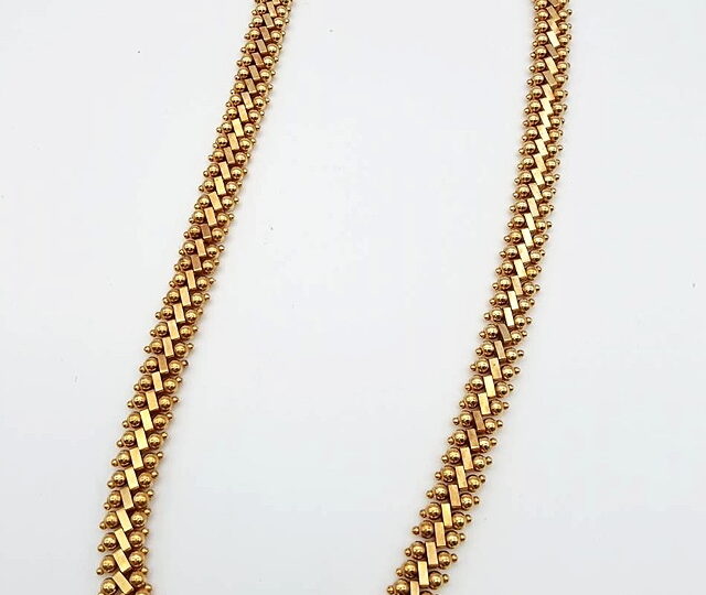 今回はK18、ネックレスのお買取りです。K18素材で作成されたネックレス。重量が30g超えるので重みのあるネックレスです。今回は重量があるので430,000円を超えるを査定金額になりました。