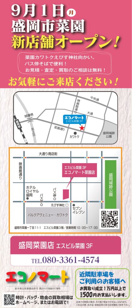 2025年9月1日にエコノマートの新店舗が盛岡市菜園にオープンしました!