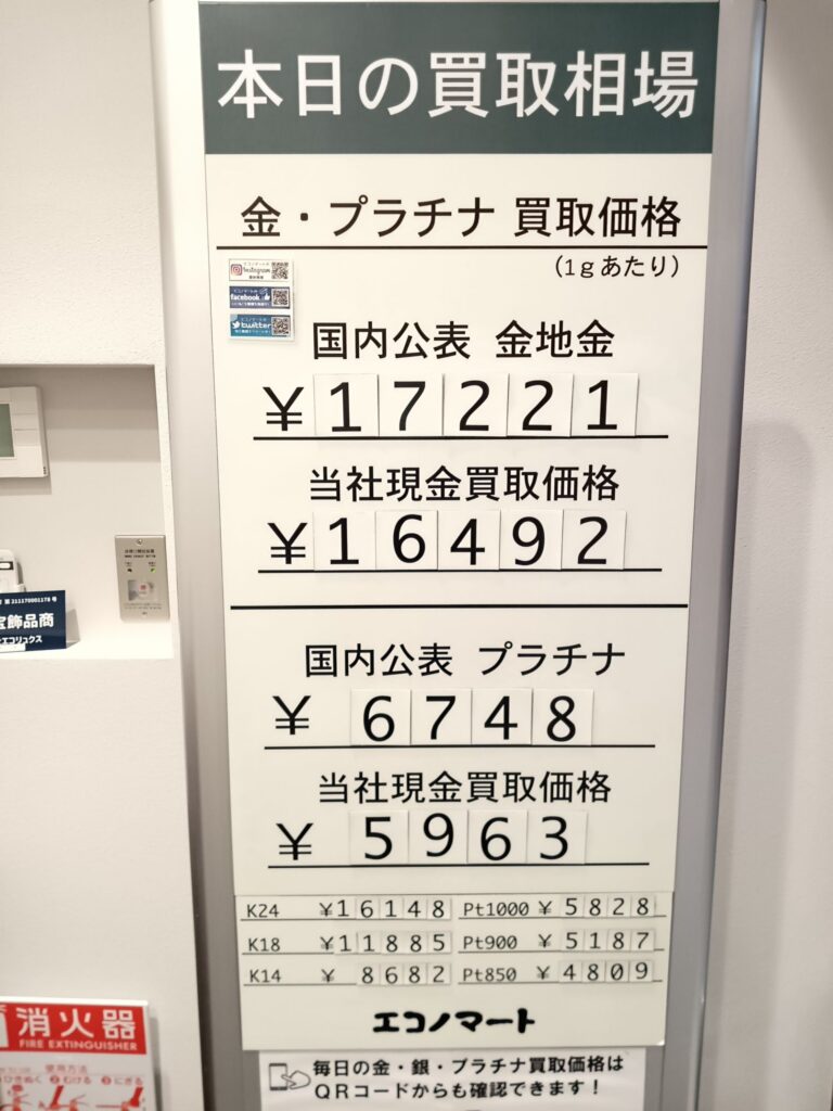 エコノマートは本日も金・銀・プラチナ製品各種を岩手県内トップクラスの買取単価にお買取りしております。