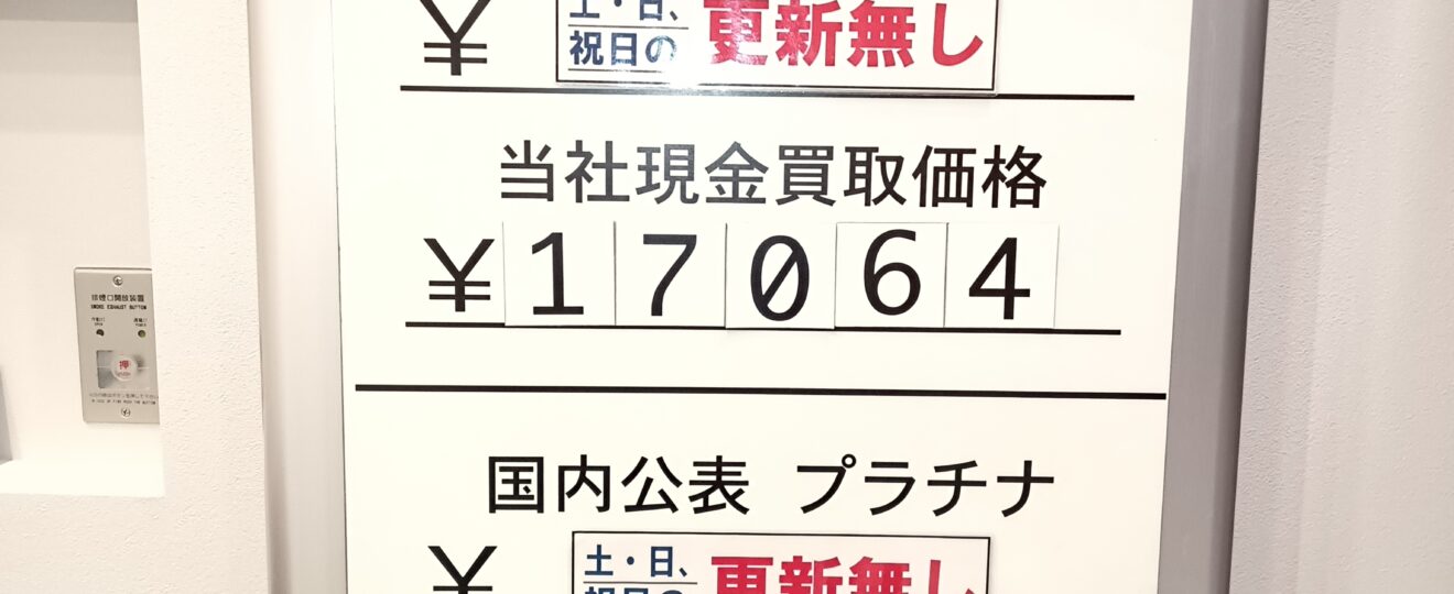 【本日の金・銀・プラチナ買取り相場】
