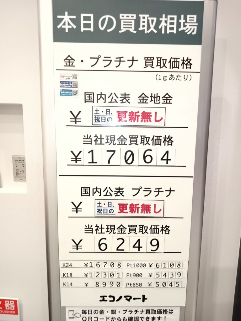 8/30(土)本日の金・プラチナ買取価格《エコノマート 盛岡南イオン・サンリア》