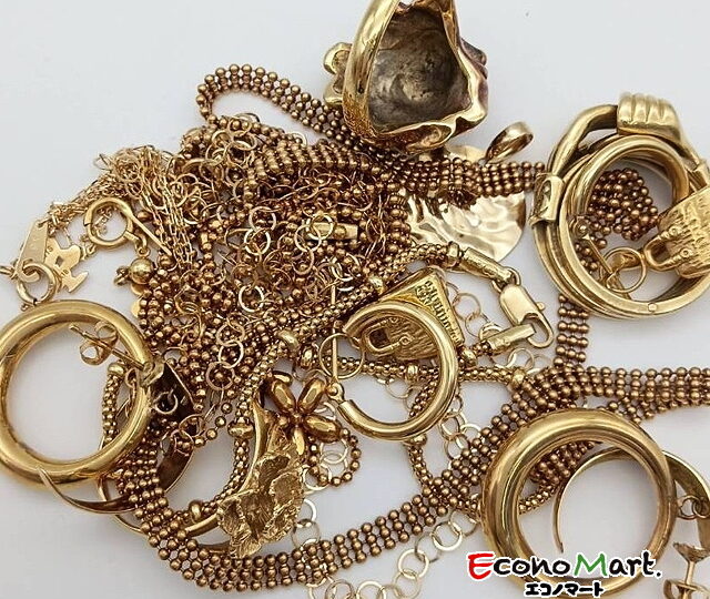 エコノマートでは金、プラチナなどの貴金属類(アクセサリー、金貨、銀貨、メダル、盃など)やルイヴィトン、シャネルなどのブランド品(バッグ、財布、小物類)、ロレックス、オメガなどの腕時計などお買取りしています。お使いになっていないお品物がございましたら、一度ご相談ください。お買い物やお食事などのお時間に商品をお預かりして査定をすることも可能です。