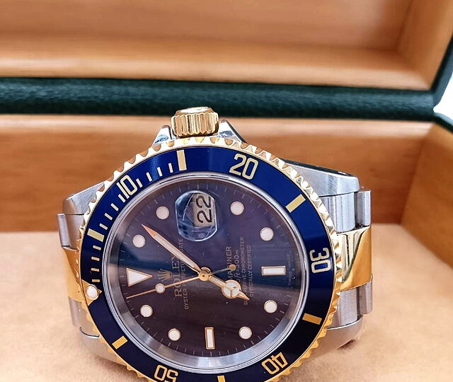 ロレックス・腕時計のお買取りです。サブマリーナ、ブルーダイヤル、K18コンビモデルです。中古市場の高騰も落ち着き、価格も安定しています。ですが高額になるのは変わらないので、お持ちの方は一度ご相談ください。今回は状態良く、高額買取になりました。