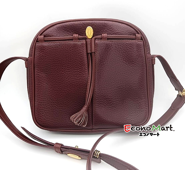 カルティエ、ショルダーバッグのお買取りです。カルティエ定番のマストライン。ボルドーのカラーが特徴的がバッグです。今回は状態良く、買取成立になりました。