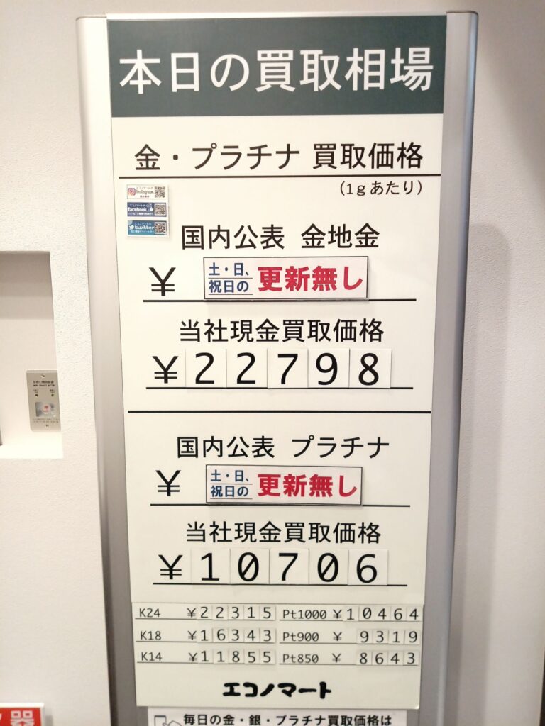 1/2(金)本日の金・プラチナ買取価格《エコノマート 盛岡南イオン》
