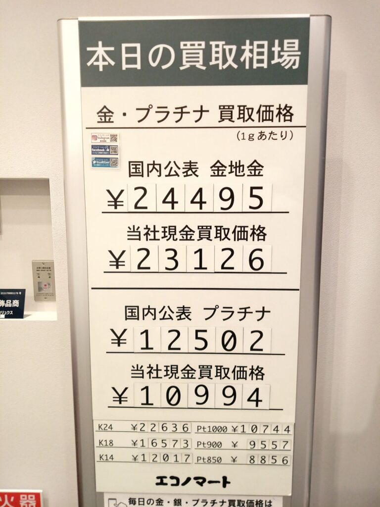 1/6(火)本日の金・プラチナ買取価格《エコノマート 盛岡南イオン・菜園》