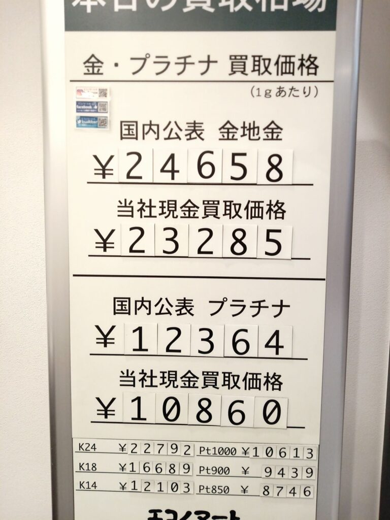 1/9(金)本日の金・プラチナ買取価格《エコノマート 盛岡南イオン・菜園》
