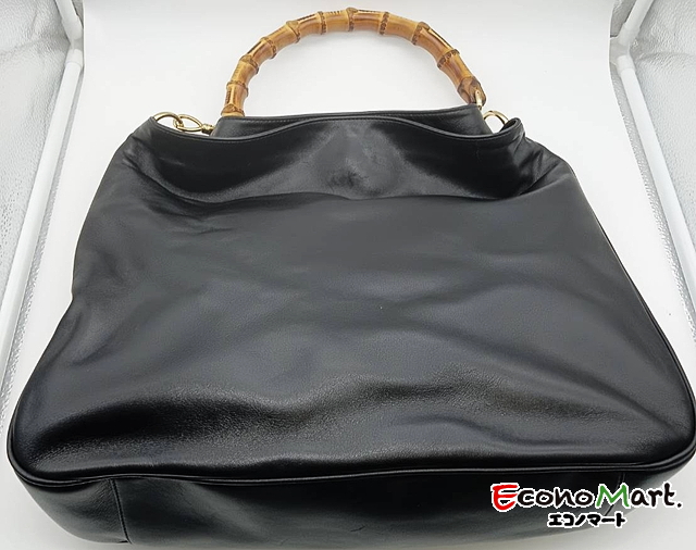 グッチ、ハンドバッグのお買取りです。グッチ定番のバンブーハンドルのバッグ。レザー生地でブラックを基調にシックにまとめています。今回は状態良く、買取成立になりました。
