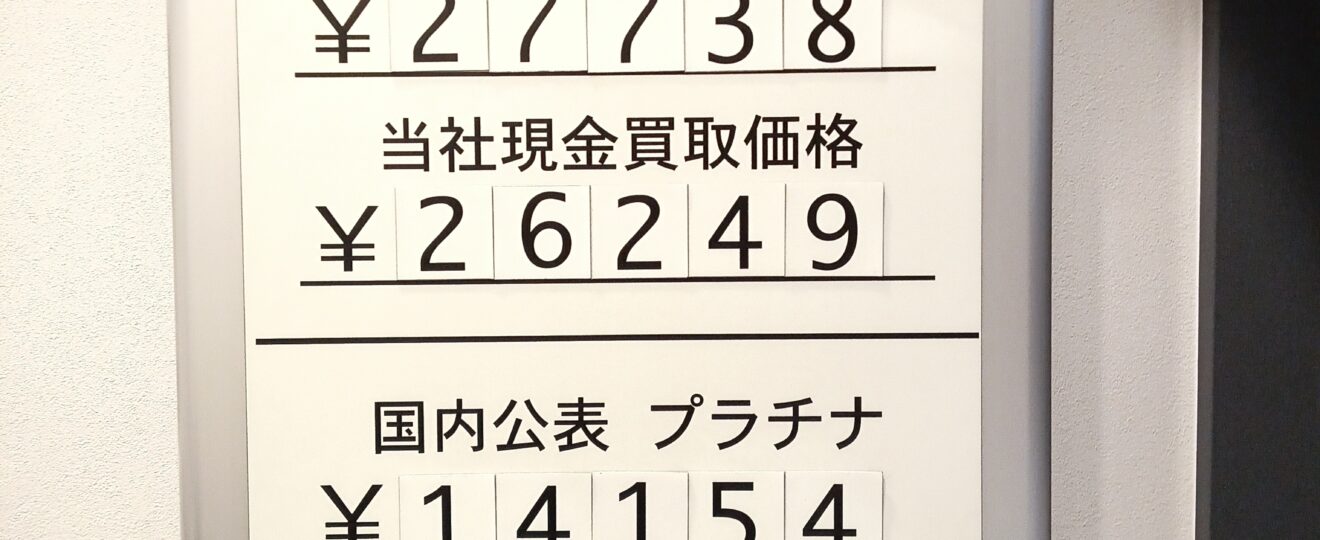 【本日の金・銀・プラチナ買取り相場】