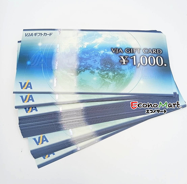 金券、VJAギフトカードのお買取りです。信販系の金券、商品券は額面の95%でお買取りになります。一部お買取り率が異なる場合がありますので、お持ちの方はご相談ください。金券のお買取りはエコノマート菜園店、大船渡サンリア店まで。イオンモール盛岡南店ではお買取りは致しておりません。尚、販売はどの店舗でも致しておりませんのでご注意ください。