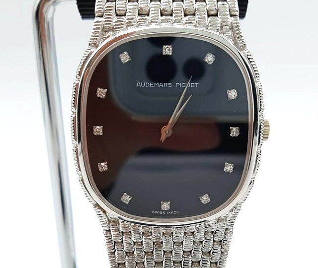 オーデマピケ、腕時計のお買取りです。1970年代~80年代に製造され、K18ホワイトゴールドを使用した金無垢の腕時計、コブラ。形がコブラの頭を連想させることからそう呼ばれる時計です。今回は金相場が高騰、ブランド代も付き、さらに状態が良いので、高額買取になりました。