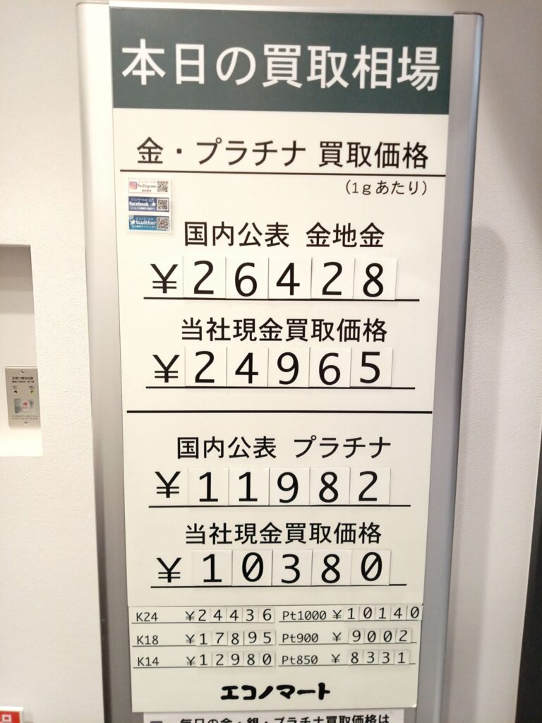 エコノマートは本日も金・銀・プラチナ製品各種を岩手県内トップクラスの買取単価にお買取りしております。