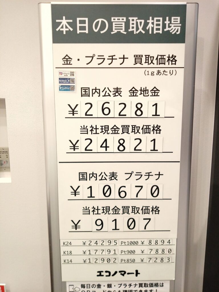 2/6(金)本日の金・プラチナ買取価格《エコノマート 盛岡南イオン・菜園》