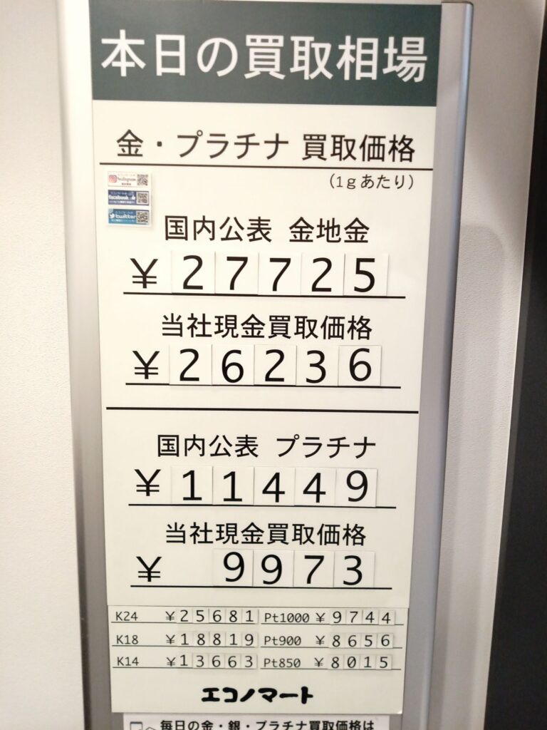 エコノマートは本日も金・銀・プラチナ製品各種を岩手県内トップクラスの買取単価にお買取りしております。