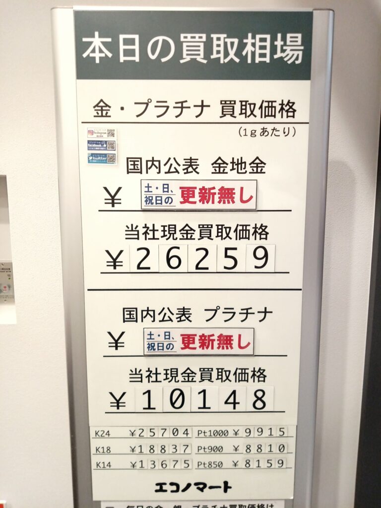 2/22(日)本日の金・プラチナ買取価格《エコノマート 盛岡南イオン・菜園・サンリア》