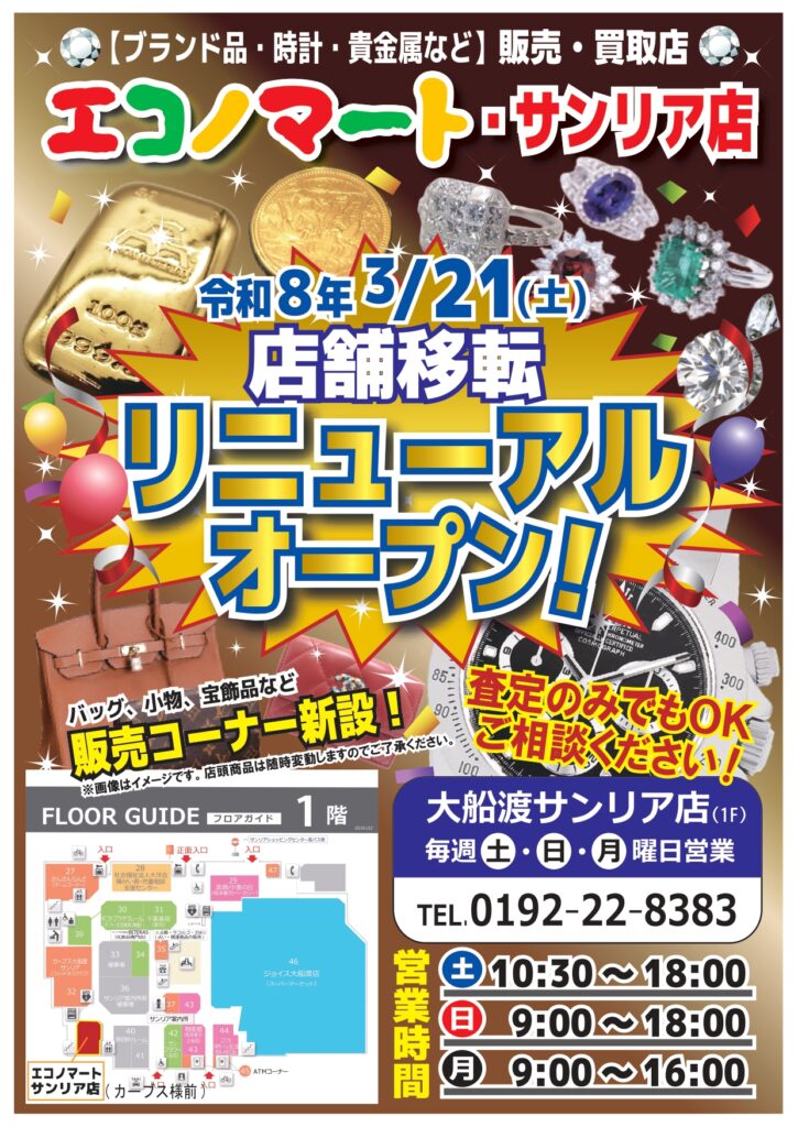 2026年3月21日にエコノマートサンリア店が販売コーナーを新設してサンリア1Fフロア内に