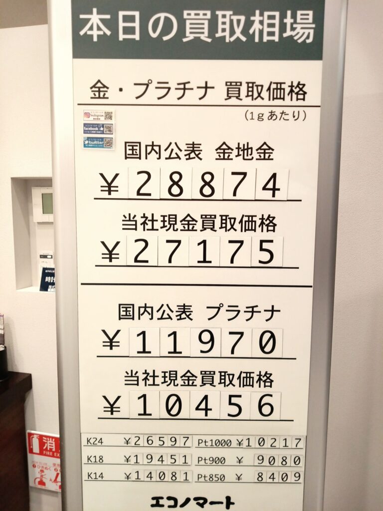 3/12(木)本日の金・プラチナ買取価格《エコノマート 盛岡南イオン・菜園》