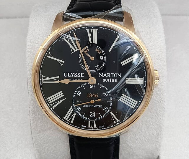 ユリスナルダン、腕時計のお買取りです。船舶用のクロノメーターで有名なユリスナルダン。K18素材のケースで高級感があふれ、ダイヤル、インデックスなどアクセントを加えています。今回はかなり状態良く、高額買取になりました。
